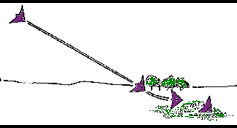 Landings: A normal, planned landing takes advantage of the fact that, as the kite flies farther "out" to the right or left, it loses drive and speed. A landing is simply flying the kite to the point where it runs out of forward drive at the same time it reaches the ground.
